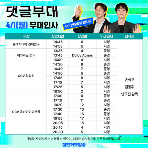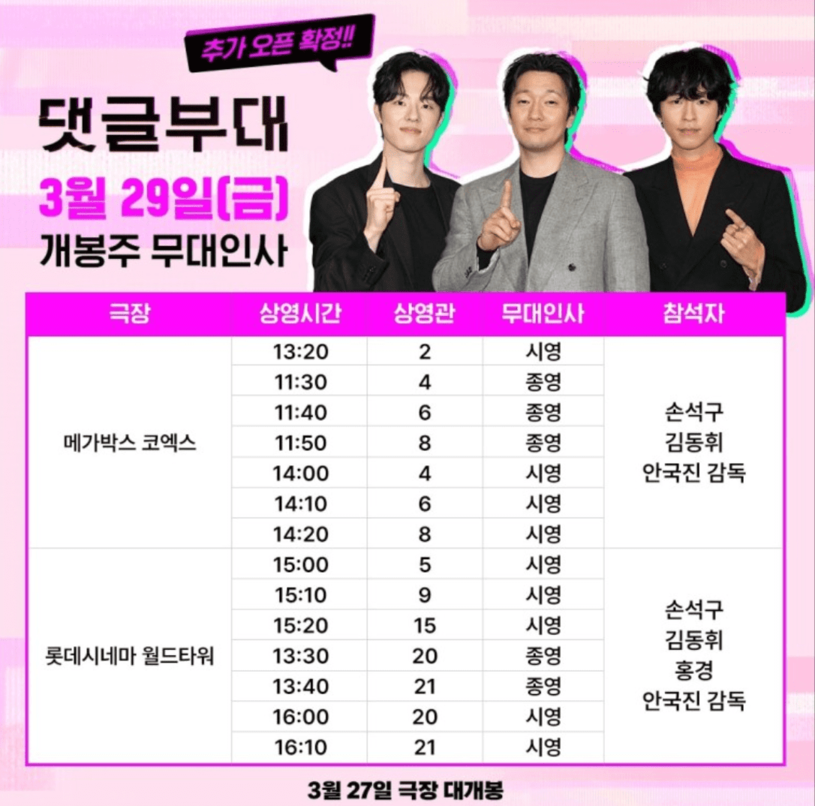 영화 댓글부대 개봉주 무대인사 스페셜 GV 일정